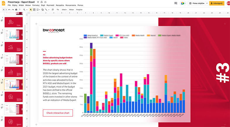 Po wykonaniu zadania przedstawiliśmy nasze spostrzeżenia i raporty w arkuszach Excel oraz złożonych prezentacjach. Obie strony były zadowolone z wyników, więc przedłużyliśmy naszą współpracę